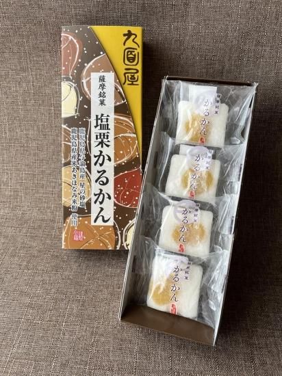 鹿児島特産かるかんの生地に与論島の”星の砂塩”を合わせ、栗甘露煮を一粒入れたこだわりのかるかんです。
